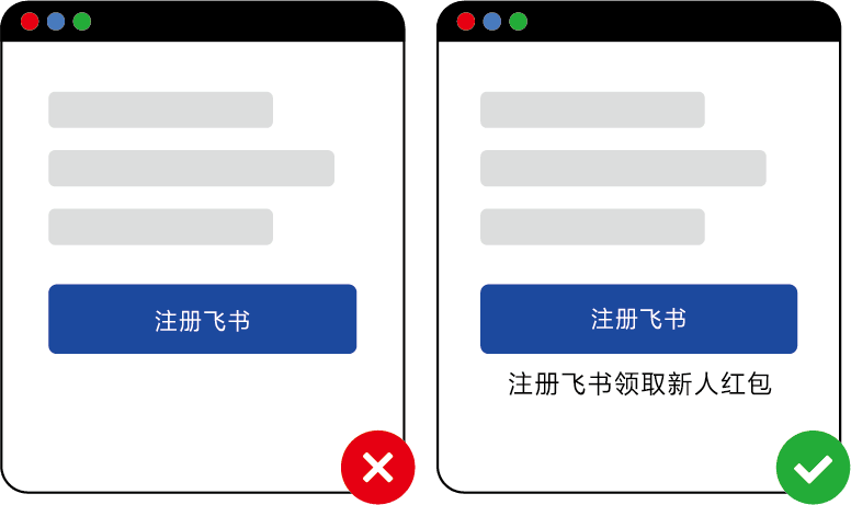 CTA 按钮应在其旁边包含信息性标签,以清除不确定性。