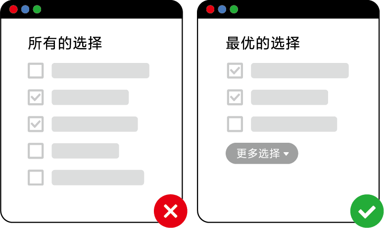 又称选择超载。当出现太多选择时,我们的大脑就会瘫痪,很难进行选择。
